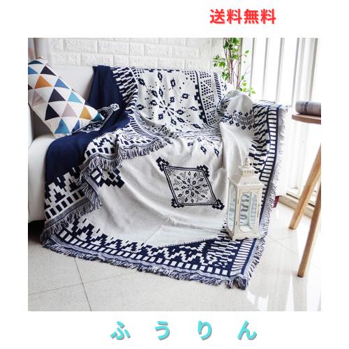 【製品仕様】多機能、四季通用、北欧風、フリンジ付き 、幾何模様、ダークブルー・ ベージュ。他社とは異なり、弊社の製品は両面で使用できます。簡単な幾何学の図案で、人に静かで快適な感じを与えて、ほどんとの内装風格に適用します。