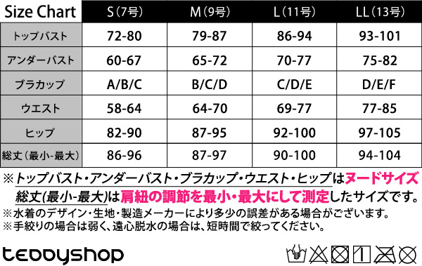 ※トップバスト・アンダーバスト・ブラカップ・ウエスト・ヒップはヌードサイズ、