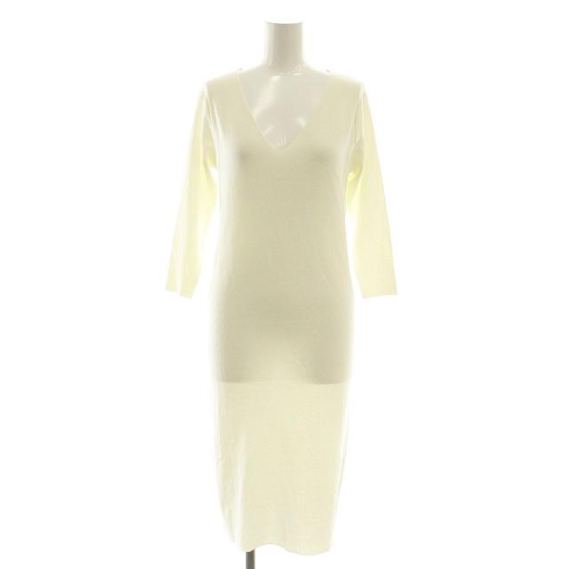 【中古】リエンダ rienda slimmedVネックニットワンピース ターコイズ ミモレ ロング 七分袖 F 白 ホワイト