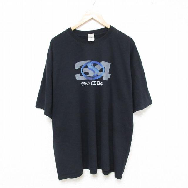 古着 半袖 ビンテージ Tシャツ メンズ 00年代 00s 3D RACING 大きいサイズ ロング丈 クルーネック 黒 ブラック XLサイズ 中古 中古 古着