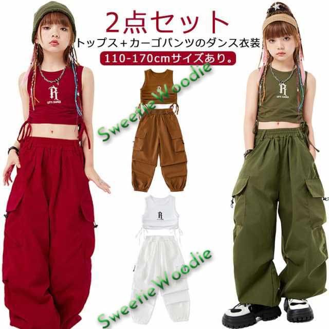 ノースリーブ ダンス衣装 キッズ hiphop キッズ トップス へそ出し 女の子 韓国 カーゴパンツ ダンスウェア セットアップ ヒップホップ 上下セット ジャズダンス ジュニア ガールズ 子供 練習着 団体服 応援団 jazz 大きいサイズ