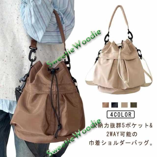 2way ショルダーバッグ 巾着 トートバッグ レディース 巾着バッグ ショルダー ナイロン トート 軽量 大容量 大きめ ハンドバッグ ドローストリング 斜めかけ 肩掛け バッグ 鞄 ミリタリー 多ポケット 大人カジュアル 通勤 通学 旅行 【送無】
