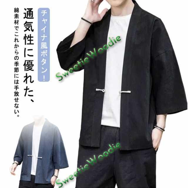 カーディガン メンズ 羽織 チャイナボタン 甚平風 浴衣 男性 着物 ジャケット 大きいサイズ チャイナ風 普段着 上着 ルームウエア 無地 薄手 祭り おしゃれ 着物 ゆったり 花火大会 M L XL 2XL 3XL 4XL 5XL