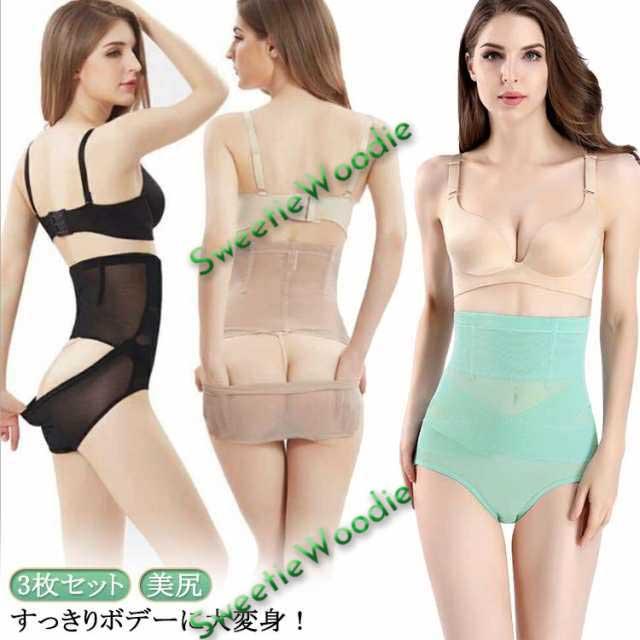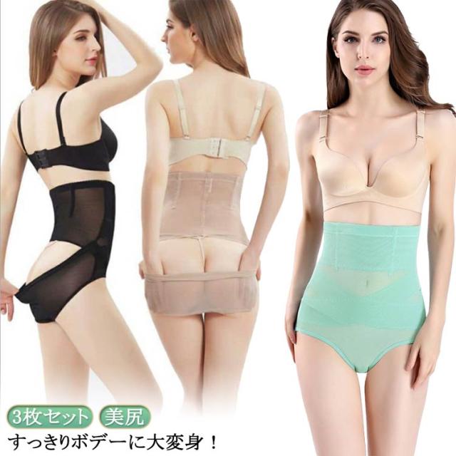 3枚セット 補正下着 くびれ ガードル ウエストニッパー クロスパワーネット 産後 骨盤 大きいサイズ 美尻 ハイウエスト ハイウエスト ブラック 肌色 3枚セット ピンク 黒