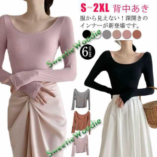 インナー 深開き あったか バレエネック バックオープン 肩開き 背中あき 襟ぐり広め 服から見えない 無地 シンプル 薄手 肌着 長袖 防寒 トップス チラ見え防止 お洒落 送料無料