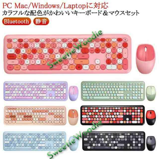 かわいい iPad キーボード 電池式 ワーク セット Bluetooth マウス 丸いキー キーボード 静音 無線マウス タブレット 無線 携帯 持ち運び サイレント ワイヤレス スマホ パソコン PC Mac/Windows/Laptopに対応 おしゃれ 薄型 学校 学生 オフィス 勤務 女性用 配色