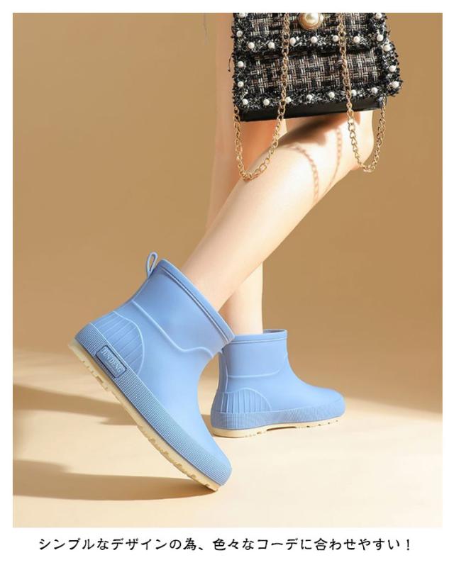 | 雨や雪の日の嫌な気分を払拭する今話題のお洒落ブーツ シンプルなデザインの為、色々なコーデに合わせやすい! やわらかい素材の為、ストレスがないからお出かけが楽しい! 凹凸のアウトソールで滑りにくく安全です。 ショート丈があるので、着脱しやすいからストレスなし! | |