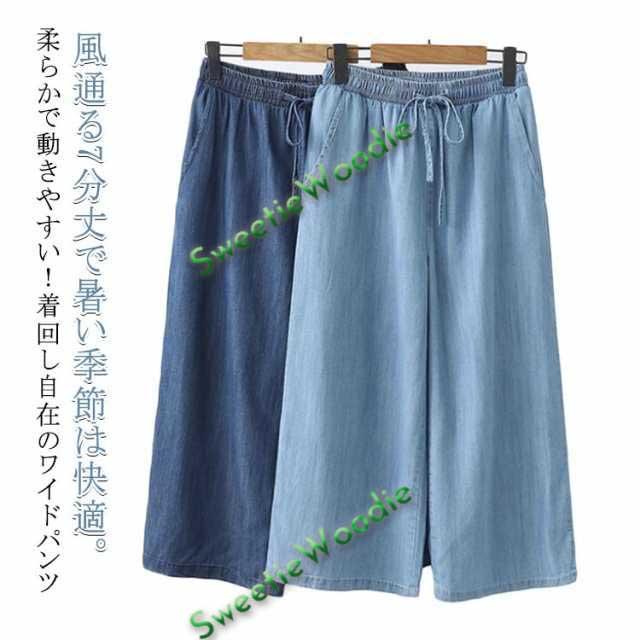 レディース 涼しい ワイドパンツ ウェストゴム ガウチョパンツ ゆるパンツ 七分丈 夏 デニムパンツ ハイウェスト ポケット付き イージーパンツ 薄手 7分丈 カジュアル ワイドパンツ 大きいサイズ ゆったり 体型カバー 通勤 通学 シンプル 無地