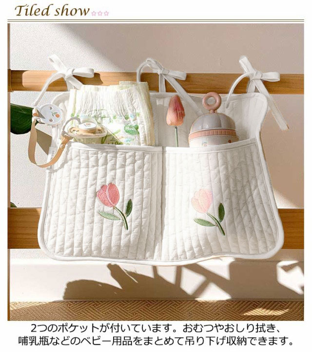 ベビーベッド収納 サイドポケット キルト ベビーベッド ベビーカー ベッドサイド 吊り下げ おむつ収納 小物入れ おむつ入れ 韓国 キッズ ベビー 赤ちゃん ナチュラル 綿 コットン キルティング 収納ポケット 可愛い おしゃれ 出産祝い プレゼント ベビー用寝具
