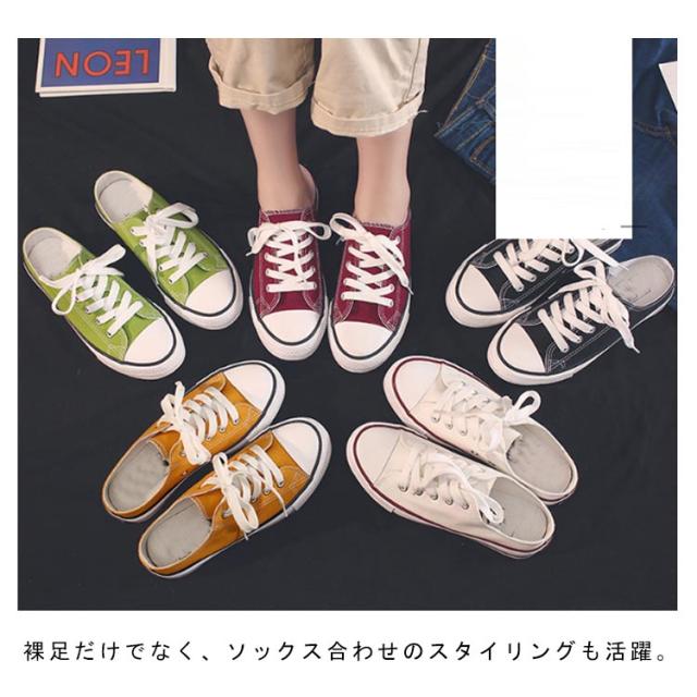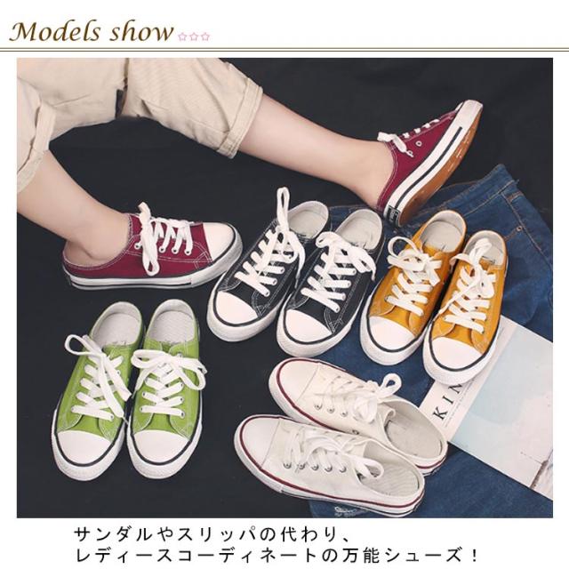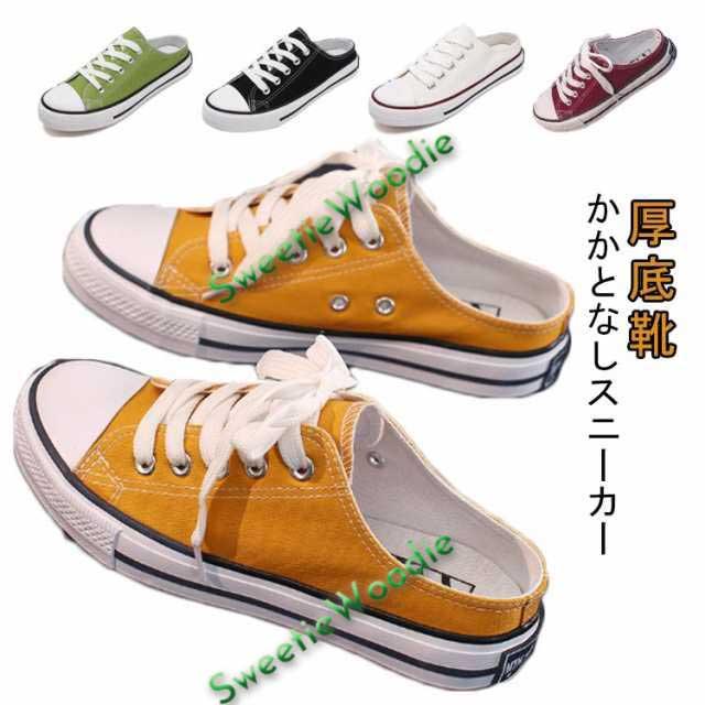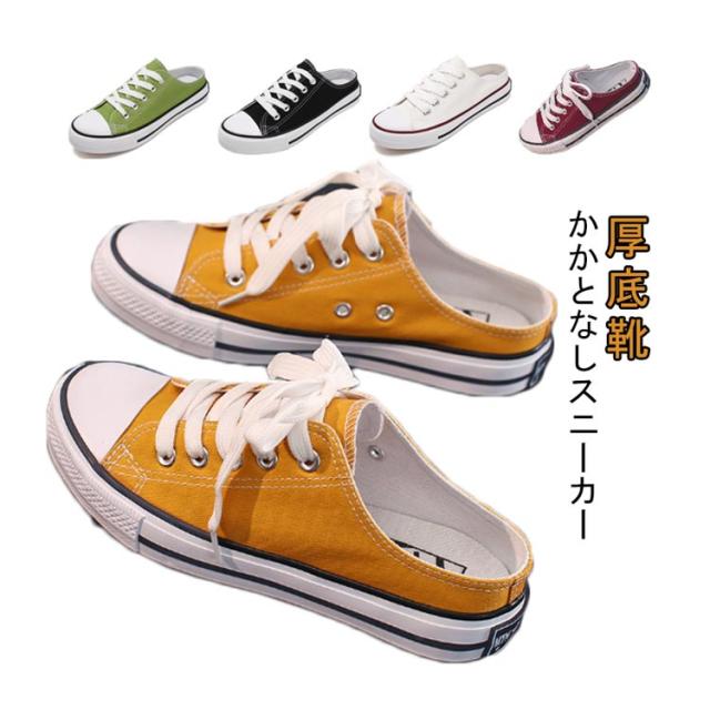 | かかとなしスニーカー 厚底靴 サンダルやスリッパの代わり、レディースコーディネートの万能シューズ! 裸足だけでなく、ソックス合わせのスタイリングも活躍。 | |