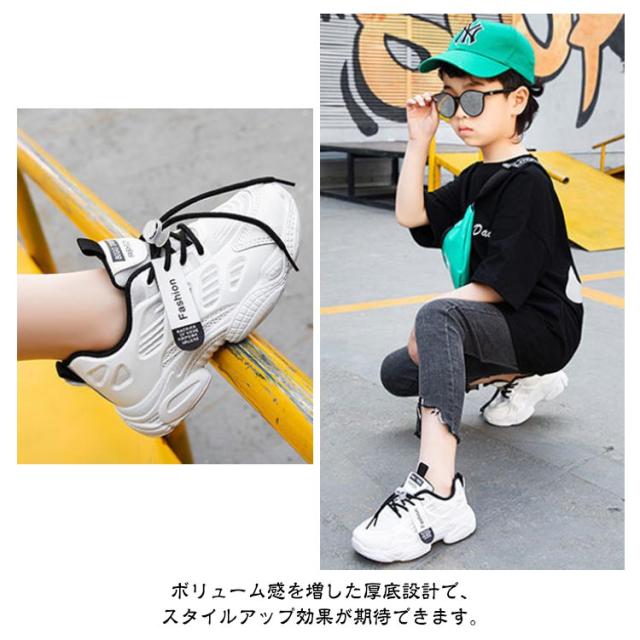| 結ばない・ほどけない靴紐!キッズ向けダッドシューズです。 ボリューム感を増した厚底設計で、スタイルアップ効果が期待できます。 アッパーは伸縮性のあるメッシュ素材で足にやさしくフィットし、すぐに脱げてしまう心配なし。 シューズの先部分の広い空間は足の指の動きをスムーズにできるようにし、成長発育と認知発達によい。 柔らかくて伸展性が良い、適当な通気性能を持ち、全体が軽くて滑りにくい、スニーカーとしは最適です。 | |
