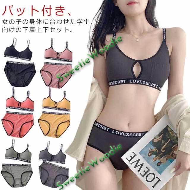 ノンワイヤーブラ おしゃれ 中学生 ショーツ 可愛い ノンワイヤー ジュニアブラ スポブラ ガールズブラ 高校生 女の子 上下セット パッド付き スポーツブラ ハーフトップ ショーツ レディース ヨガ ジム ナイトブラ カップ付 インナー