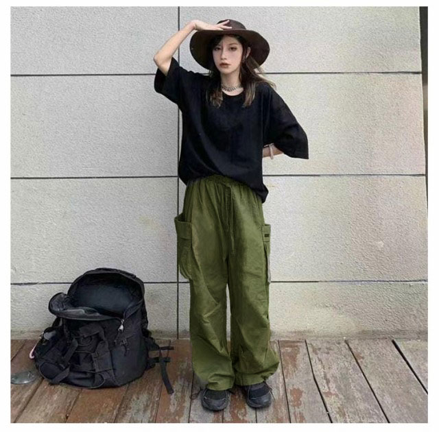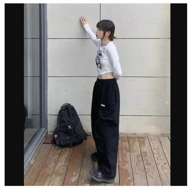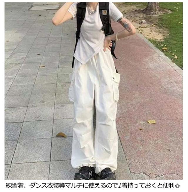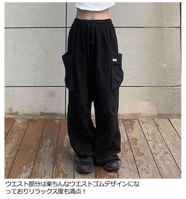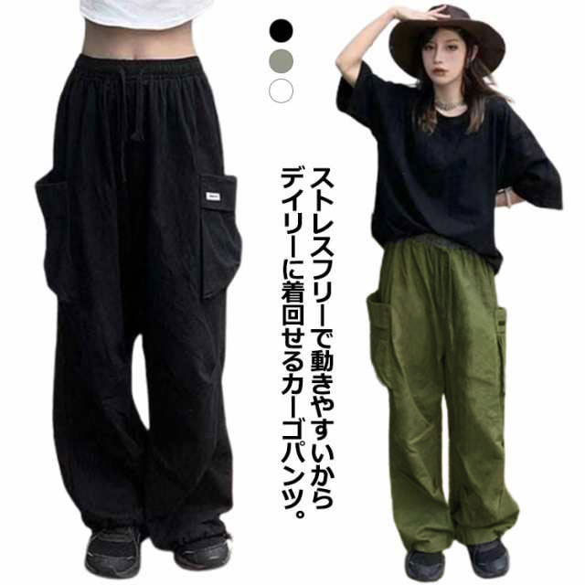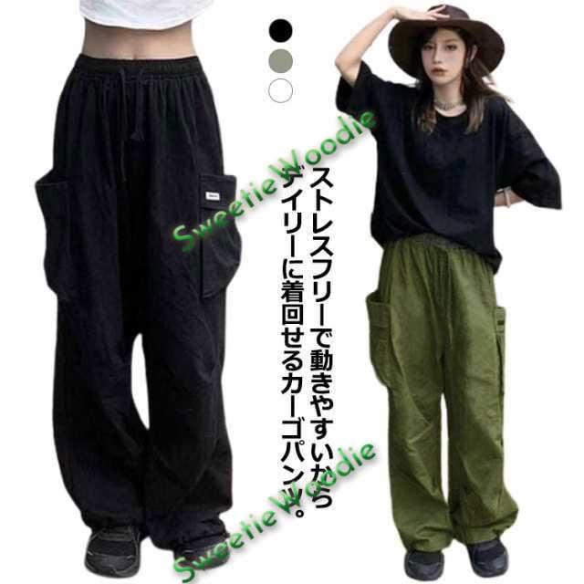 カーゴパンツ レディース イージーパンツ ワイドパンツ カジュアル サイドポケット ロングパンツ 春秋 ボトムス ゆったり お洒落 大きいサイズ 体型カバー シンプル ダンスウェア ダンス衣装 練習着 原宿風 送料無料