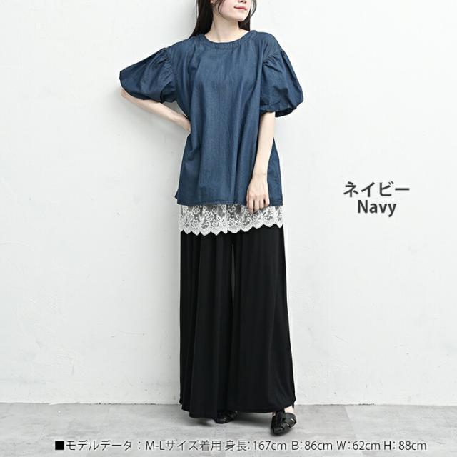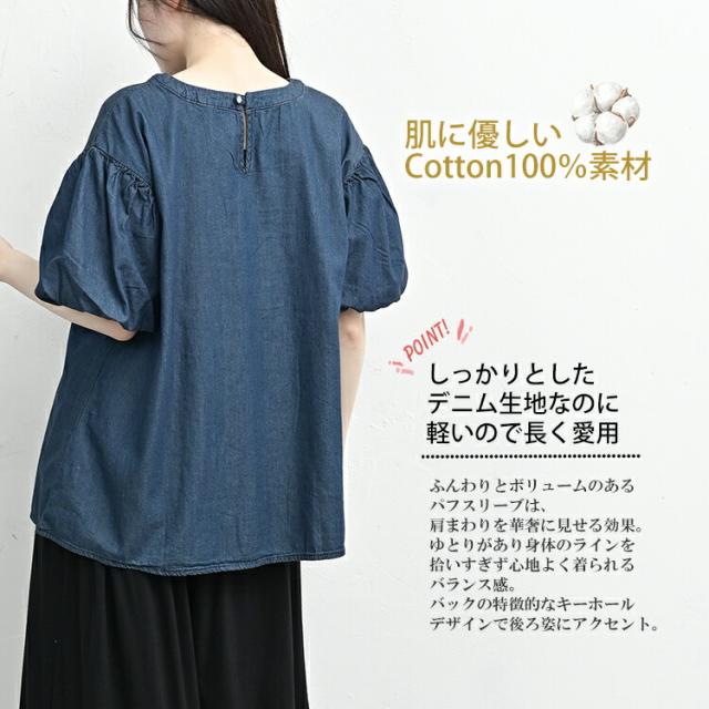【メール便対応】肌に嬉しいコットンデニム生地のパフ袖カットソー。 大きいサイズ レディース 半袖トップス 半袖カットソー 半袖シャツ エアリーデニムシャツ コットンデニムブラウス ダンガリー Uネック クルーネック 半袖 5分袖 五分袖 パフスリーブ バルーンスリーブ Aライン 春服 夏服 秋服 春物 夏物 秋物 春トップス 夏トップス 秋トップス cotton100 コットン100% 天然素材 軽めのデニム生地 体型カバー お腹まわりカバー 二の腕カバー ゆったり 大きめ 大人 カジュアル フェミニン ナチュラル 大人可愛い きれいめ かわいい 着こなし おしゃれ 定番 春コーデ 夏コーデ 秋コーデ ファッション 大きめ 女性 婦人用 ミセス 30代 40代 50代 2025 夏新作 春 夏 秋 紺 LL 3L 4L 5L 13号 15号 17号 19号 on-ssa-tp0364