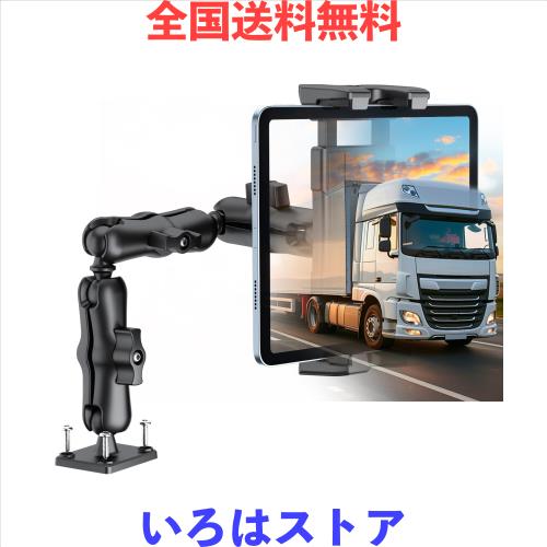 タブレットホルダー 車載 タブレットスタンド【穴あけ・三段式】デスク/壁取付 耐震設計 強力固定 多角度調節 5.4-13インチのスマホ&タブ