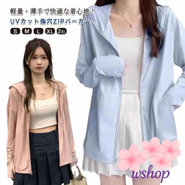 【wshop】春 UVカット 薄手 羽織 UVカット パーカー トップス 夏 長袖 ライトアウター 長袖 UVカット レディース パーカー 紫外線防止 体型カバー 着回し ジップアップ 運動会 フェス 紫外線カット コンパクト 軽い 薄手 持ち運び