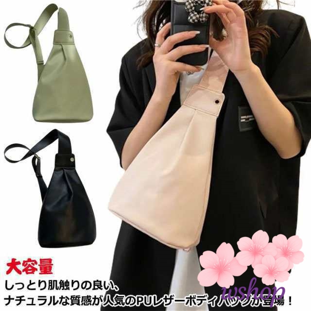 | しっとり肌触りの良い、ナチュラルな質感が人気のPUレザーボディバッグが登場! ボディバッグにありがちな野暮ったいイメージのない、女性らしいドロップ型が特徴です。 長財布が入るサイズ感で、ポケット感覚でもプラスの荷物を持ちたいが叶う! ベルトも長さが調節できるので前後で斜め掛けしたり、肩からショルダー風に持ったりと自由自在! 軽くて両手が開くから普段のお買い物や公園へのお出かけ、旅行やフェスなどのイベントにも! 体にフィットして自転車でも楽ちん♪左右どちらからでも取り出しやすいもの嬉しいポイント。 様々なシーンで活躍してくれるミニバッグです! | |
