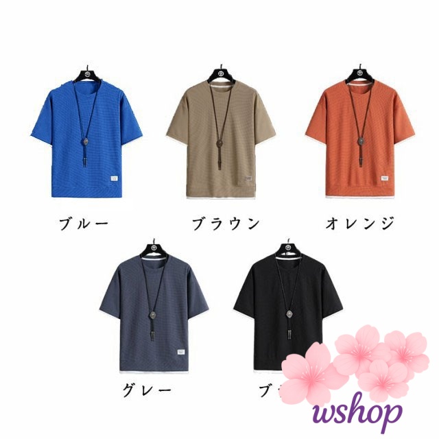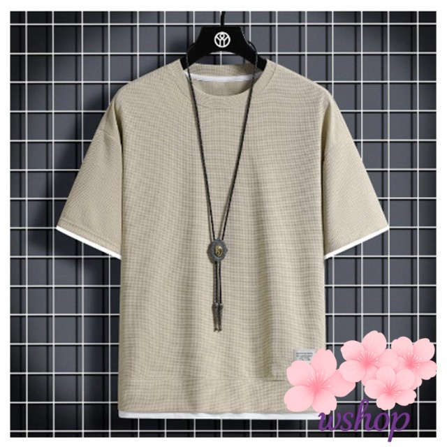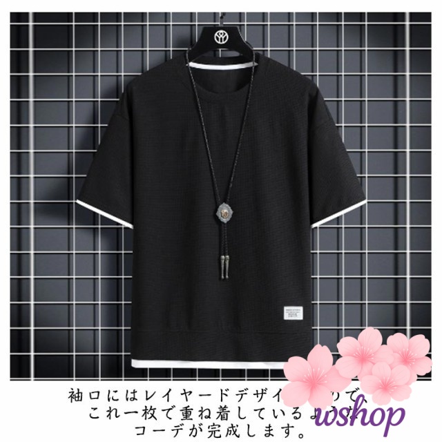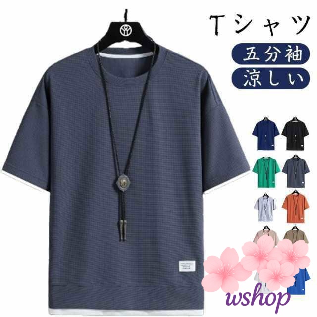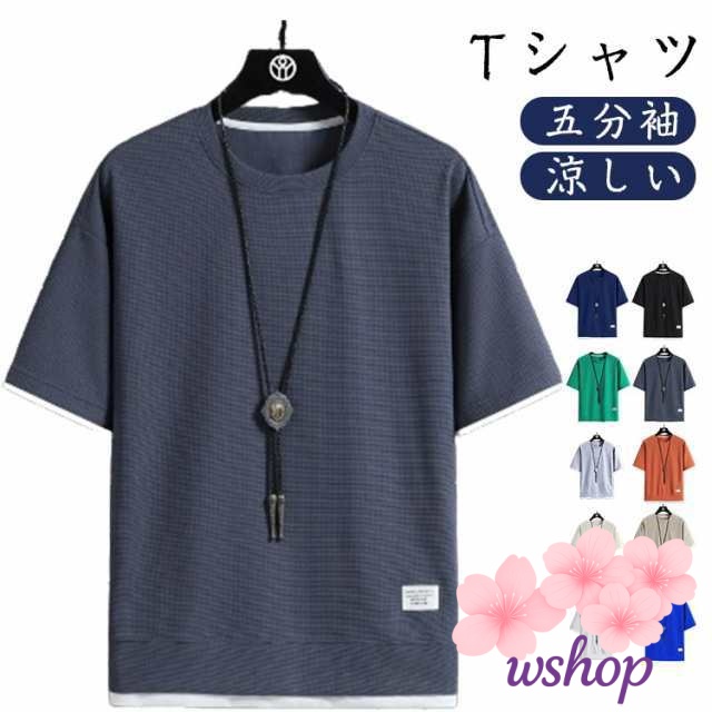 即納OK 売上急増中 ゴルフウェア tシャツ 送料無料 Tシャツ 通気性 夏服 涼しい おしゃれ インナー 半袖 パジャマ 半袖Tシャツ ワッフルTシャツ 重ね着風 ワッフル生地 カットソー 【wshop】メンズ カジュアル 五分袖 ルームウェア クルーネック お洒落 在庫わずか