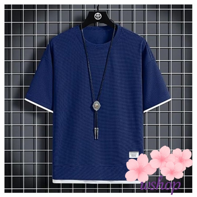 【wshop】メンズ ワッフル生地 ゴルフウェア 通気性 カジュアル ワッフルTシャツ 送料無料 Tシャツ 夏服 半袖Tシャツ 通気性 お洒落 クルーネック カットソー 五分袖 半袖 重ね着風 涼しい tシャツ インナー ルームウェア パジャマ おしゃれ