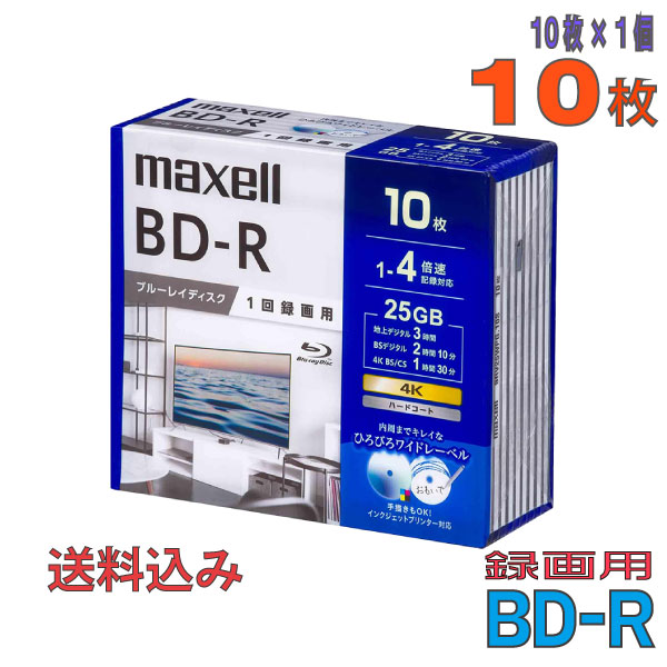 【ブルーレイディスク】 maxell(マクセル) BD-R データ&デジタルハイビジョン録画用 25GB 1-4倍速 ワイドホワイトレーベル 10枚スリムケース (BRV25WPG.10S) 【送料込み※沖縄・離島・一部地域を除く】 【KSW】