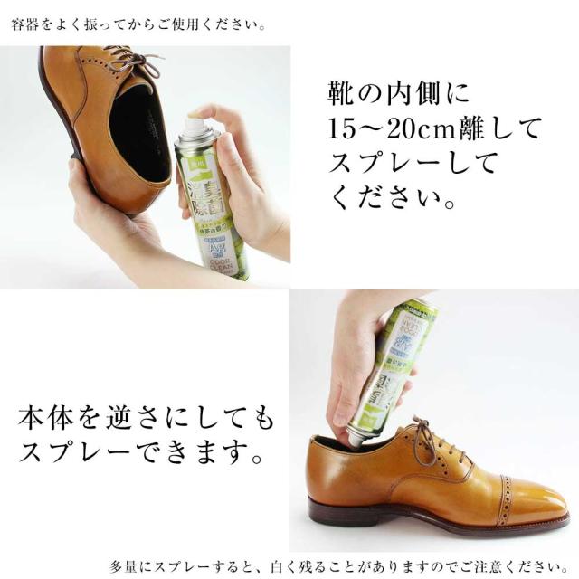 ・靴の内側に15cmから20cm離してスプレーしてください。