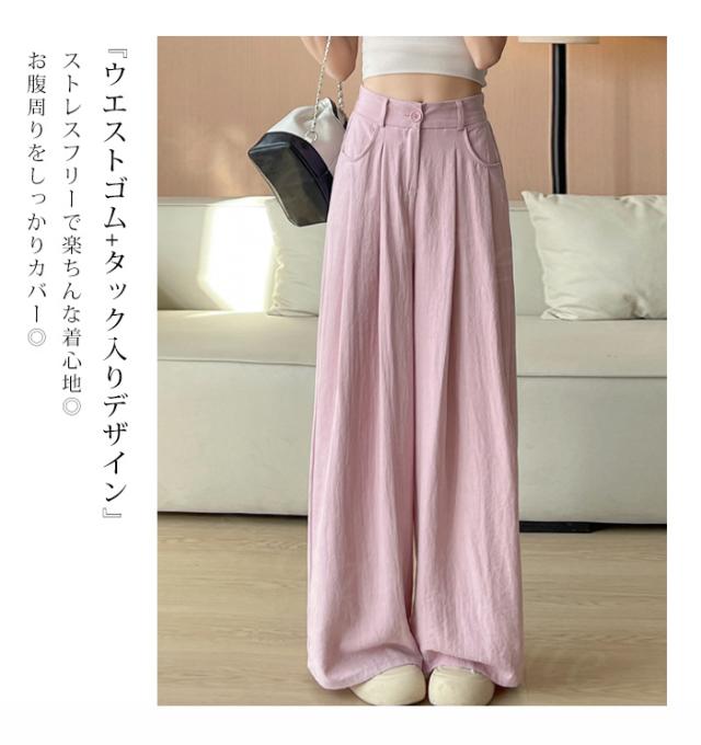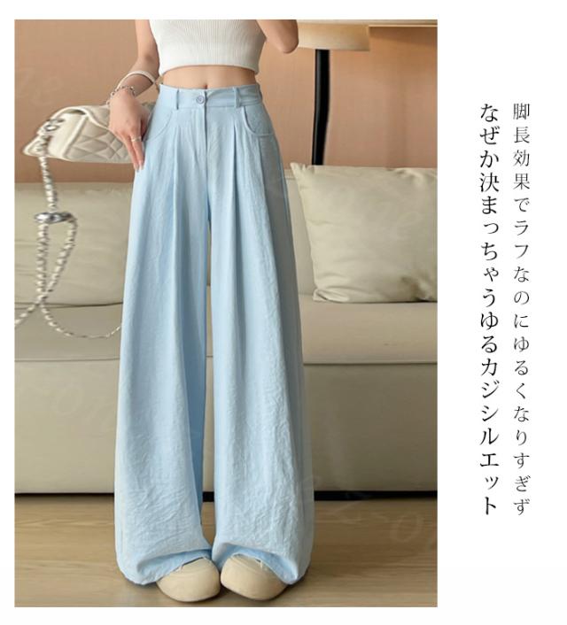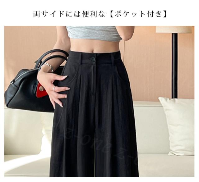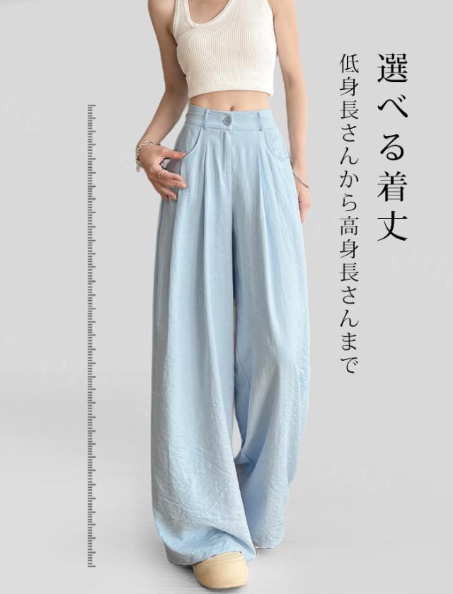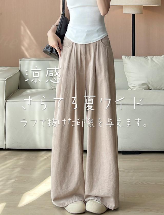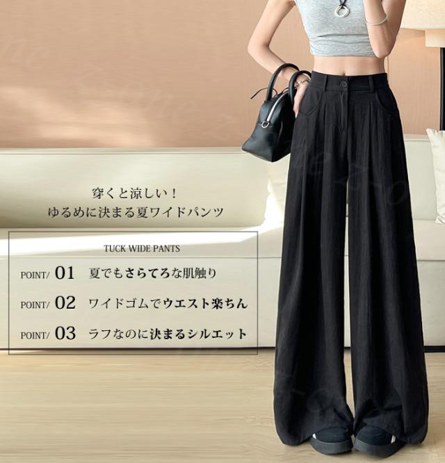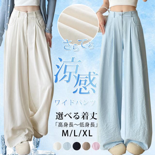 ワイドパンツ レディース 夏 涼しい 涼感 冷感 速乾 パンツ ボトムス ゆったり ガウチョパンツ タック入り タック ワイド 大きいサイズ 低身長 高身長 ポケット付き【 さらとろ涼感ダブルタックワイドパンツ 】 入学式 入園式