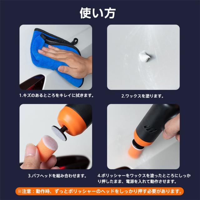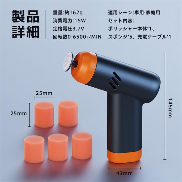 ポリッシャー 電動ポリッシャー コードレス バフ付き 充電式 ミニ キズ消し 車磨き 研磨パッド 艶出し 仕上げ 水垢取