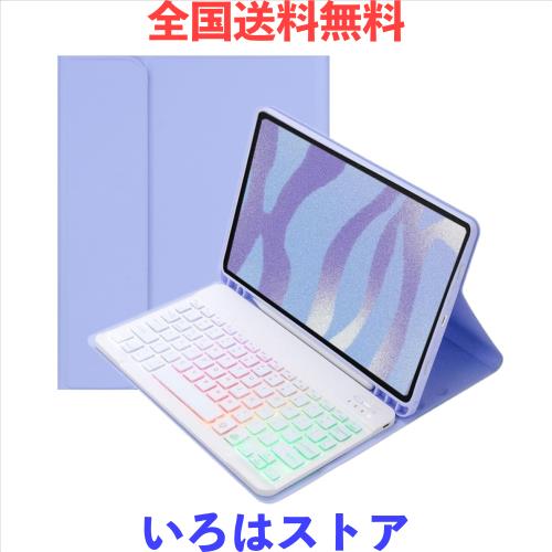 カラフルバックライト付き iPad 10.2 iPad 第 9 8 7 世代 iPadAir3 iPad Pro10.5インチ キーボードケース お洒落 可愛い バックライトキーボード ケース マグネット分離式 光るキーボード 学生 ビジネス ,紫+白