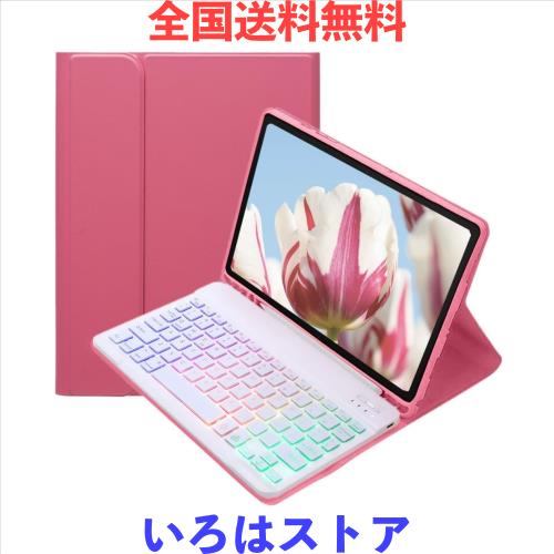 カラフルバックライト付き iPad 10.2 iPad9 iPad8 iPad7 iPadAir3 iPad Pro10.5インチ キーボードケース お洒落 可愛い バックライトキーボード ケース マグネット分離式 光るキーボード 学生 ビジネス ,濃いピンク+白