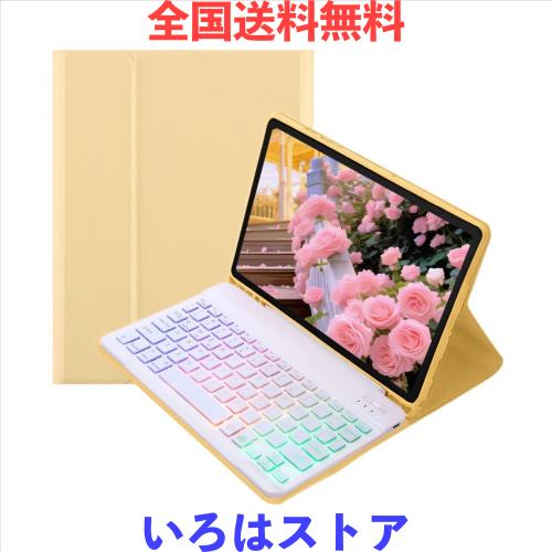 カラフルバックライト付き iPad 9.7インチ iPad 第6/5世代 Air Air2 iPadPro9.7 キーボードケース お洒落 可愛い バックライトキーボード ケース マグネット分離式 光るキーボード 学生 ビジネス ,黄色+白