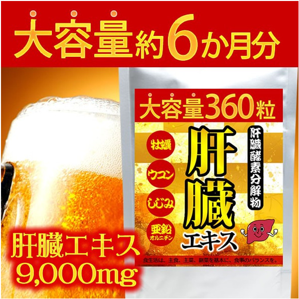 送料無料 大容量 約6か月分 肝臓エキスをド〜ンと9000mg配合したサプリメント 夜のお付き合いが多い方にも!