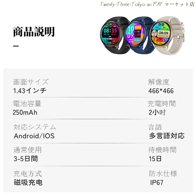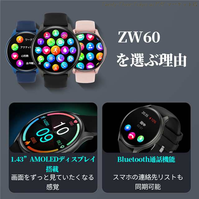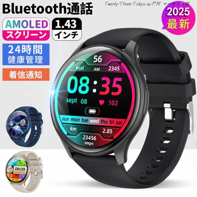 2025最新 スマートウォッチ 通話機能 1.43インチ大画面 24時間健康管理 多機能スマートウォッチ レディース メンズ 着信通知 IP67防水 睡眠モード