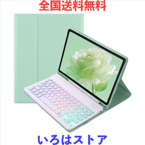 カラフルバックライト付き iPad 10.2 iPad 第 9 8 7 世代 iPadAir3 iPad Pro10.5インチ キーボードケース お洒落 可愛い バックライトキーボード ケース マグネット分離式 光るキーボード 学生 ビジネス ,ミント+白