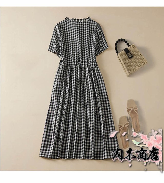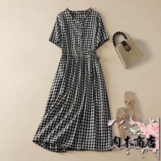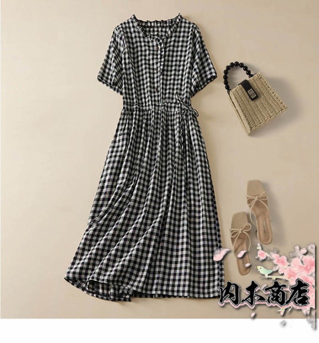 ワンピース 半袖 レディース ギンガムチェック シャツワンピース ミモレ丈ワンピース チェック柄 ワンピ 夏 サマーワンピース 膝丈 フレア ベーシック 体型カバー 大きいサイズ 着痩せ 大人 カジュアル シンプル ゆったり 送料無料