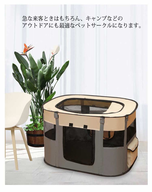 | 【通気性抜群】屋根カバーはもちろん側面もメッシュ生地で、通気性が良くて、いつでも快適にご使用いただけます。視認性も良いので離れた場所からペットの様子を確認することができます。 【折り畳み式】折りたたんで専用キャリーバッグに入れると、収納や持ち運びに便利です。 急な来客ときはもちろん、キャンプなどのアウトドアにも最適なペットサークルになります。 【便利なロールドア】出入り口を開放することができます。マジックテープでしっかり固定し、ファスナーの戻りを防止しています。 【持ち運び便利】畳めばコンパクトだから、収納に困らないです。女性や年配の方も簡単に持ち運び・組み立てができます。 【場所】屋内に置いてはもちろん、室外にペット関連のアウトドアの場合にも旅行にも帰省時の屋内にもペットサークルとして使います。 | |