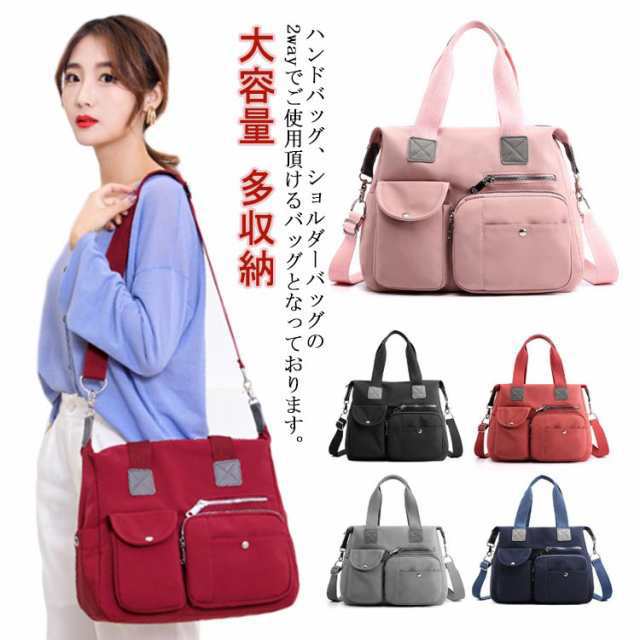 ポケット たくさん バッグ 大容量 多収納 ショルダーバッグ ハンドバッグ 2way 通勤 かばん ママバッグ バッグ トートバッグ 撥水 防水