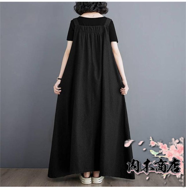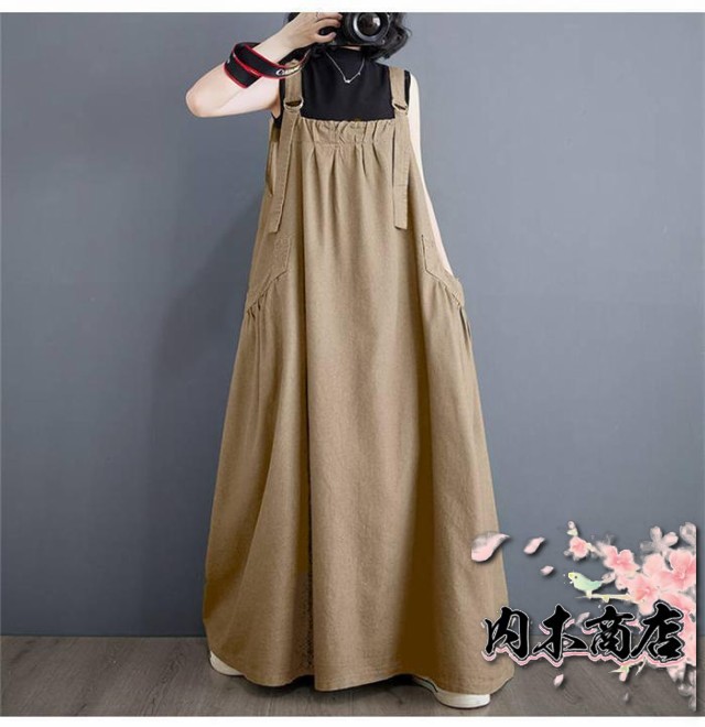 キーワードジャンパースカート 大人 ロング 黒 春 夏 綿麻混 サロペット スカート ジャンパー スカート サロペット ワンピース レディース サロペットスカート オールインワン aライン フレア 大きいサイズ オーバーオール 体型カバー ポケット 無地 春夏 秋 40代 30代 ブラック 送料無料