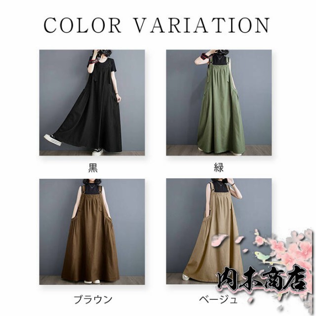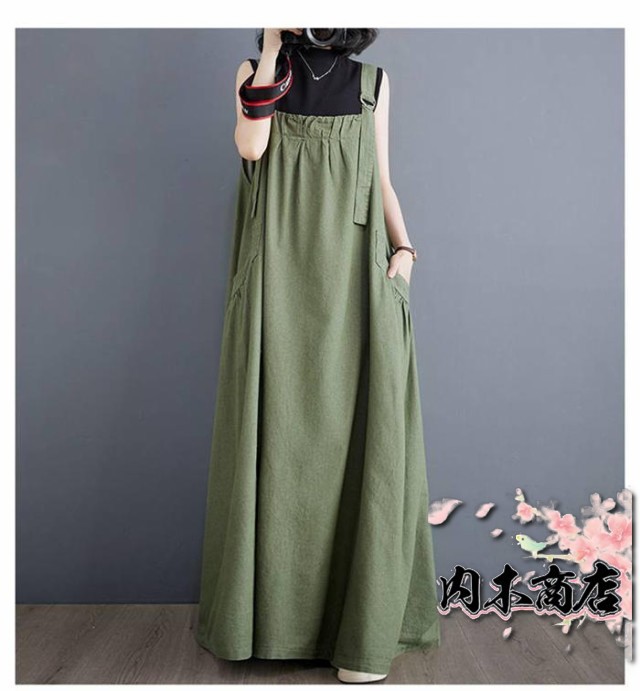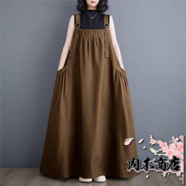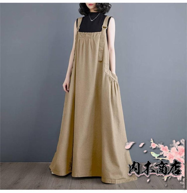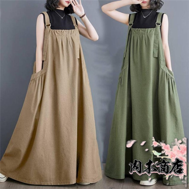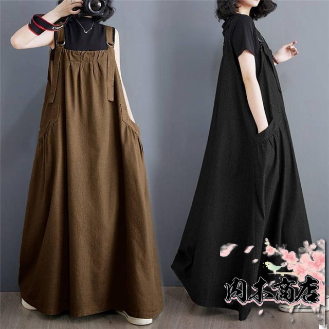 ジャンパースカート 大人 ロング 黒 春 夏 綿麻混 サロペット スカート ジャンパー スカート サロペット ワンピース レディース サロペットスカート オールインワン aライン フレア 大きいサイズ オーバーオール 体型カバー ポケット 無地 春夏 秋 40代 30代 ブラック