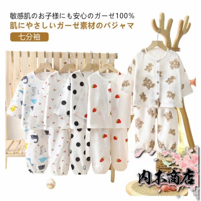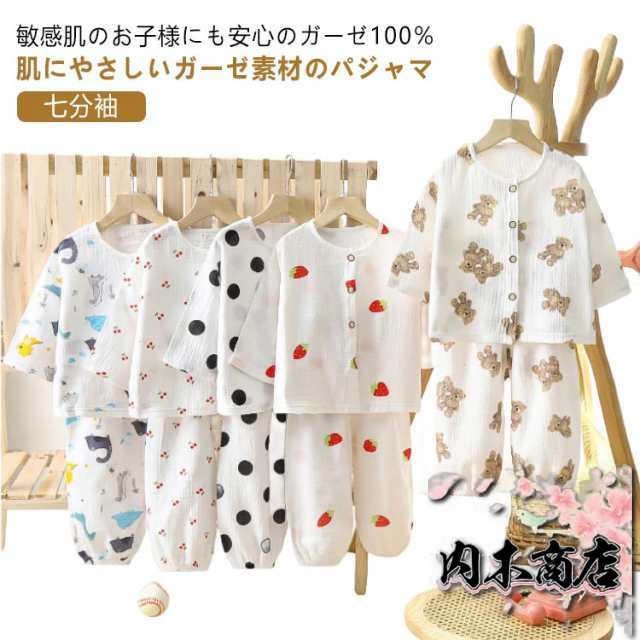 前開き 夏 春夏秋 120 コットン 子供 綿 パジャマ 長袖 子供 ベビー キッズ 上下セット ルームウエア ガーゼ 半袖 女の子 男の子 幼稚園 保育園 140 春 七分袖 夏用 80 90 100 110 通園 130 ボタン