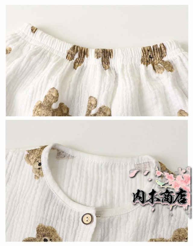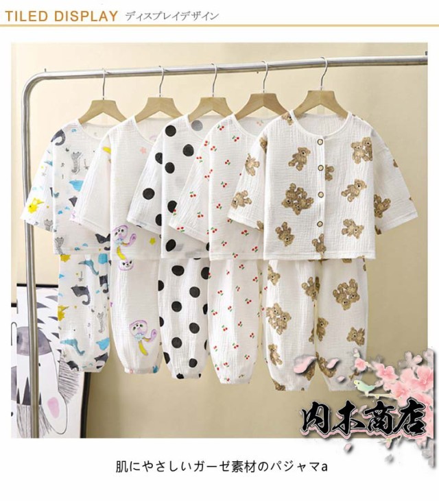 | 肌にやさしいガーゼ素材のパジャマ 敏感肌のお子様にも安心のガーゼ100% お子さまの寝汗もしっかり吸収 涼しく可愛いデザインでお部屋着におすすめです | |