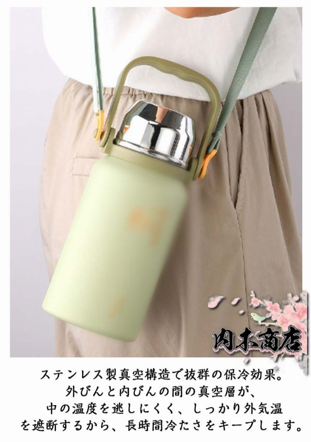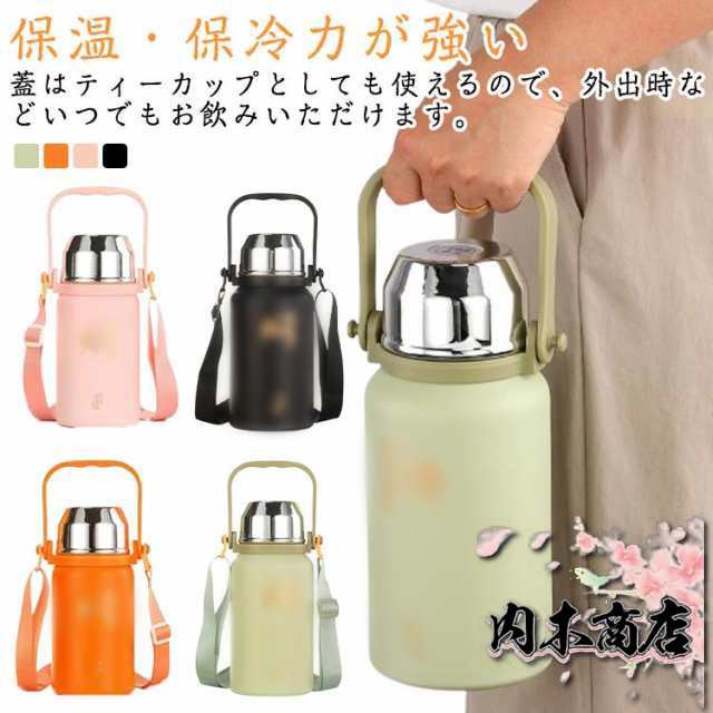 水筒 1.5L アイスコンテナ 保温 保冷 ステンレス 魔法瓶 大容量 ハンドル付 ショルダーストラップ 受け皿 ティーフィルター付き スポーツ スポーツドリンク対応 1500ml 1.5リットル レディース メンズ 手を入れて洗える 大きい 大きめ 魔法瓶