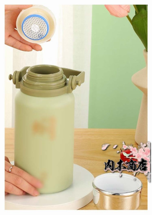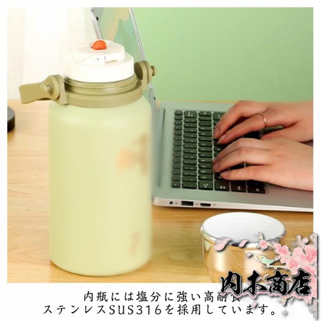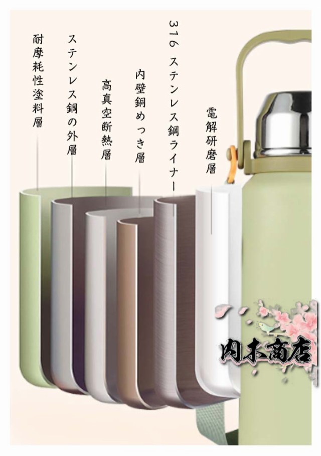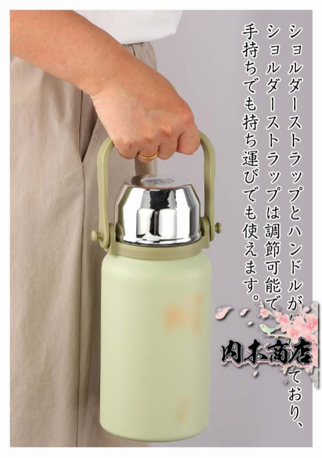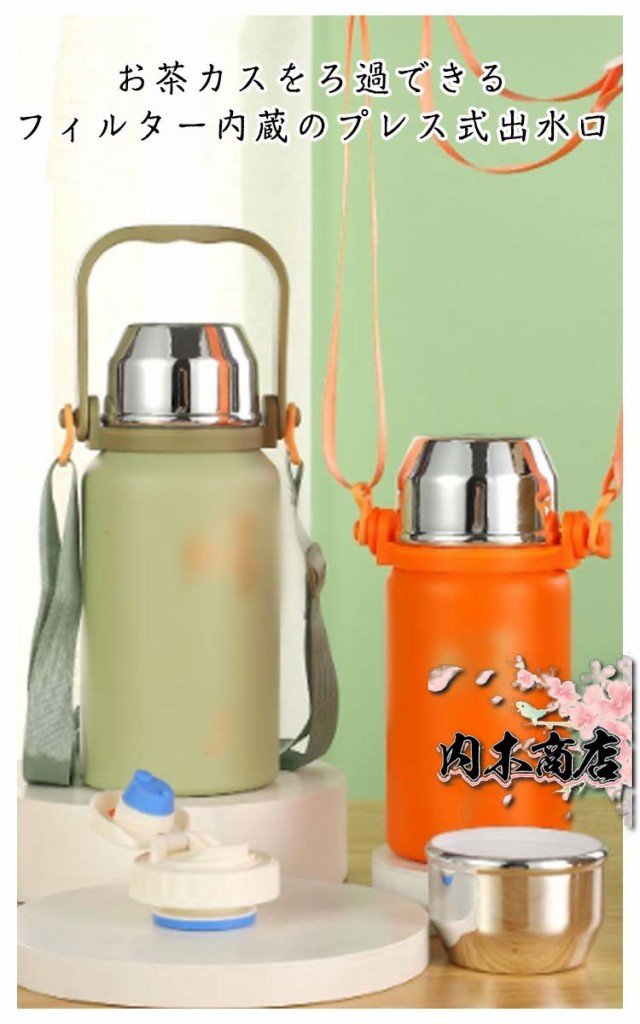 | 保温・保冷力が強い 蓋はティーカップとしても使えるので、外出時などいつでもお飲みいただけます。 お茶カスを??ろ過できるフィルター内蔵のプレス式出水口 ショルダーストラップとハンドルが付属しており、ショルダーストラップは調節可能で、手持ちでも持ち運びでも使えます。 ステンレス製真空構造で抜群の保冷効果。外びんと内びんの間の真空層が、中の温度を逃しにくく、しっかり外気温を遮断するから、長時間冷たさをキープします。 内瓶には塩分に強い高耐食ステンレスSUS316を採用しています。 | |