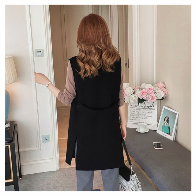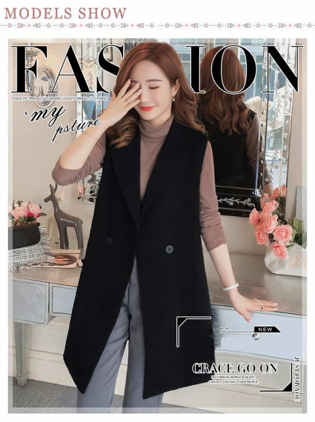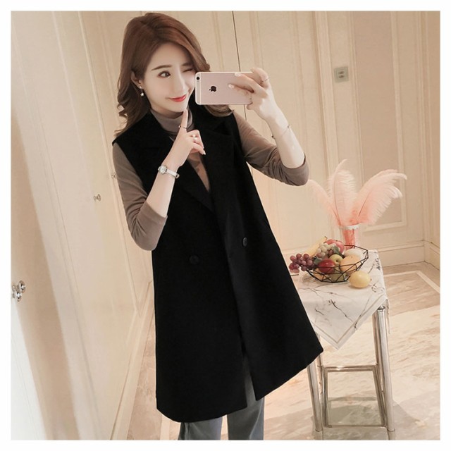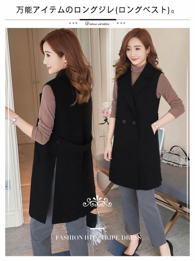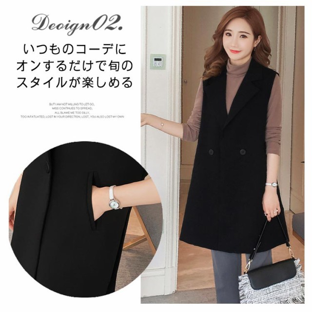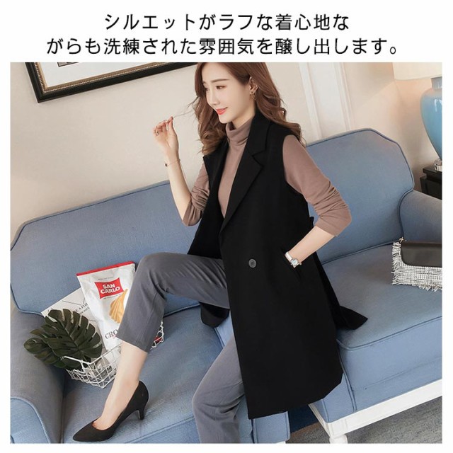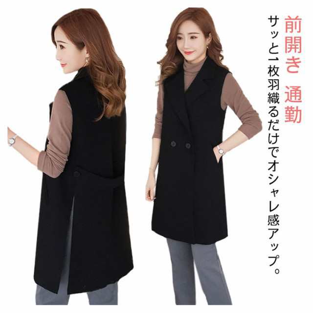 送料無料 ジレ カジュアルコート ロング ジレ ベスト ロングベスト レディース パールトレンチベスト ロング丈スーツベスト テーラードベ