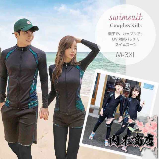 全身水着ラッシュガード5t点セット家族カップル親子レディースメンズ子供キッズ長袖長ズボン速乾性日焼け対策UV対策紫外線対策