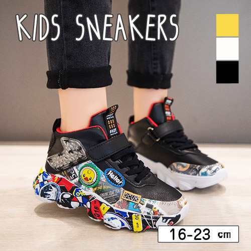 子供 靴 キッズ シューズ スニーカー ハイカット 運動靴 ベルクロ 派手 韓国 人気 ジュニア 滑り止め ダンス 衣装 女の子 女子 ガールズ 男の子 男子 ボーイズ カジュアル 16cm 17cm