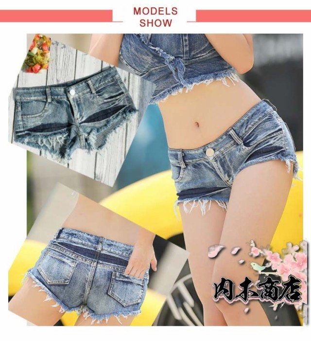 セクシー ローライズ ショートパンツ ブルーデニム 短パン スーパー極浅 スーパーローライズ 可愛い 衣装 ダンス デニム ダメージ ショートデニム かわいい 可愛い レディース ジーンズ ジーパン エロい ギャル ファッション ホットパンツ