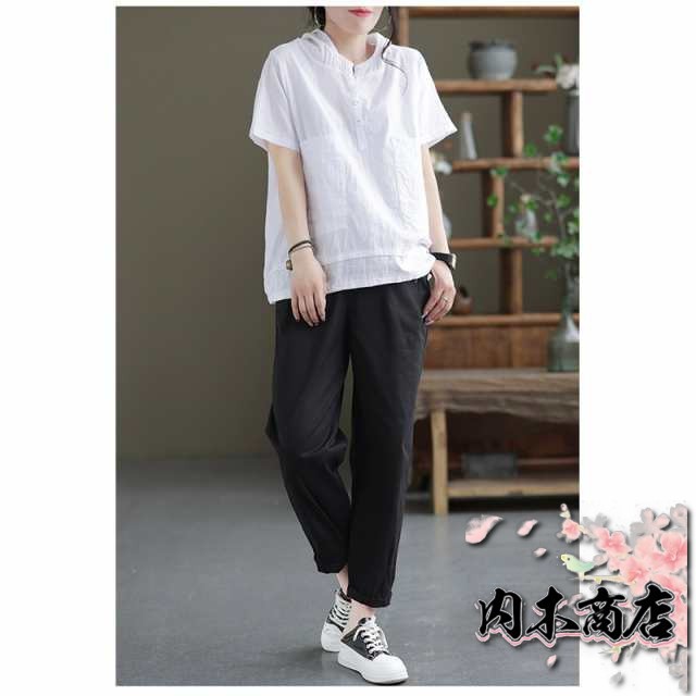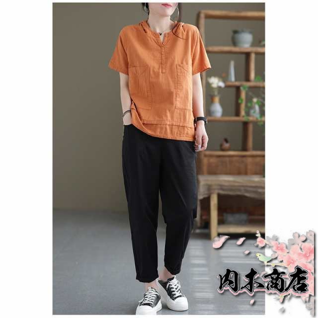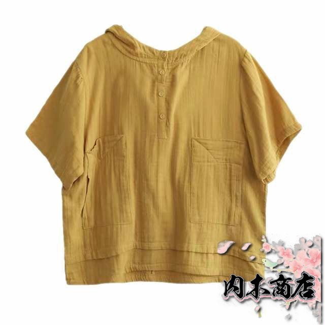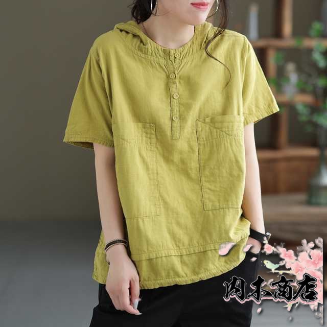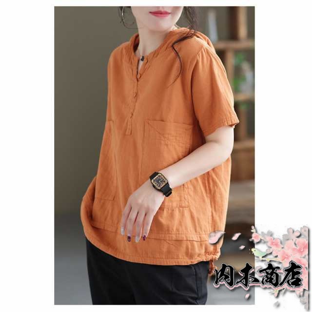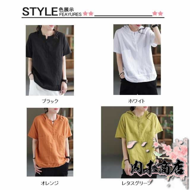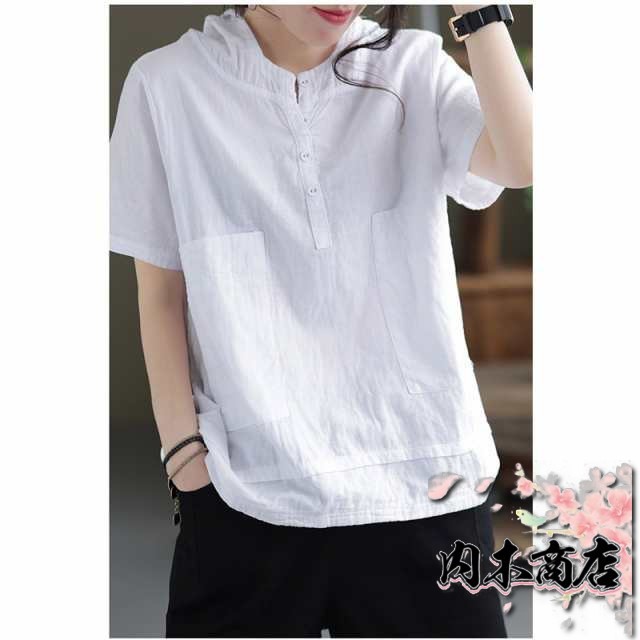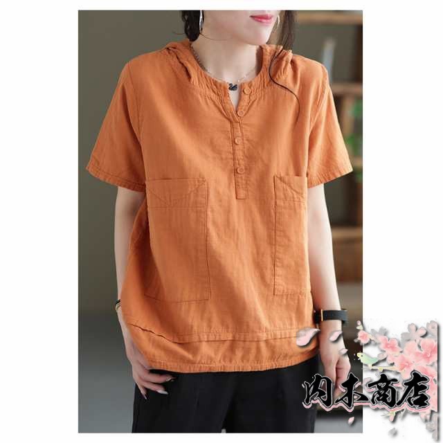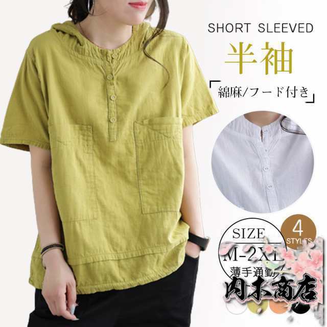 パーカー Tシャツ レディース ブラウス 春 夏 秋 リネン フード付き 半袖 シャツブラウス 綿麻トップス 着心地 大人 ゆった