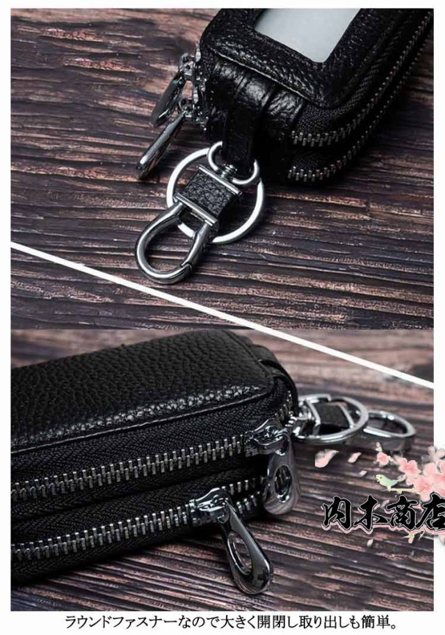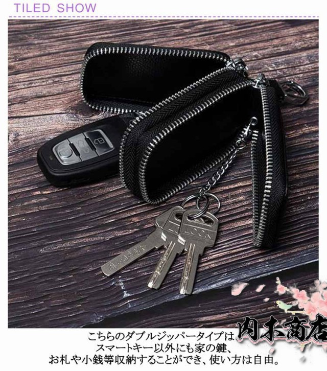 ダブルキーケース ダブルファスナータイプ 本革 スマートキーカバー 車の鍵 キーケース 収納 カバー スマートキー キーケース 2つのキー ケース スマートキーケース スマートキーケース 収納可能 おしゃれ レディース メンズ インナーチェーン付