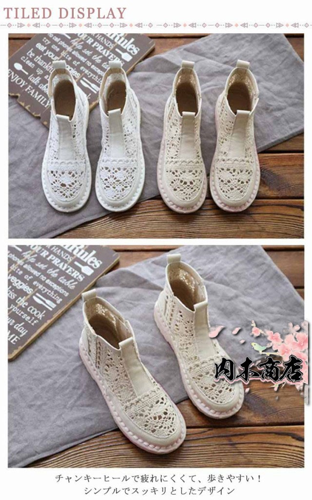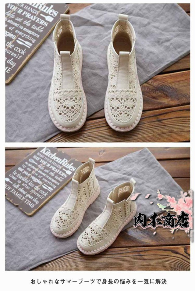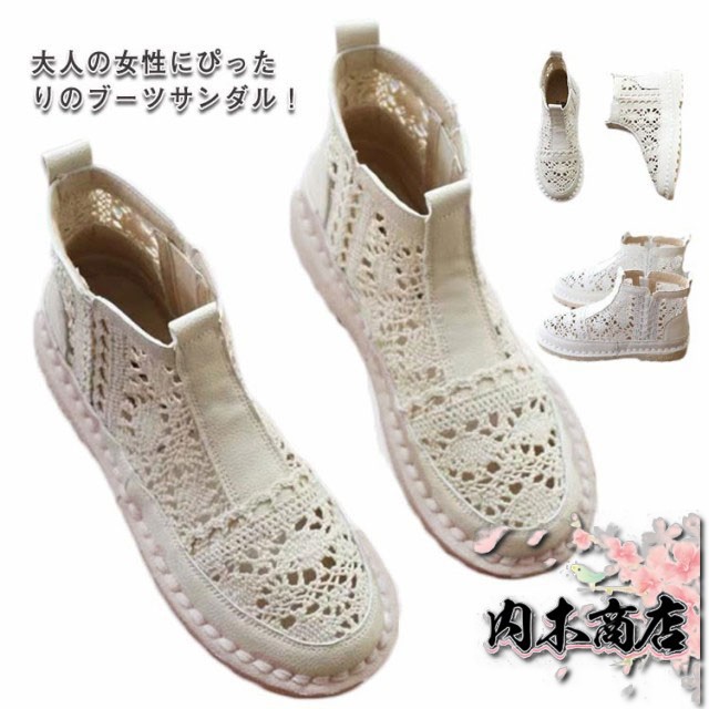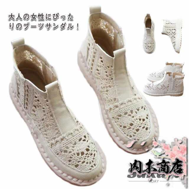 レースショートブーツ 大人 サマーブーツ メッシュ レディース 痛くない サマーブーツ 春夏 レース ローヒール フラット サンダル ブーツ 疲れない 靴 歩きやすい レース 透かし 通気性 白 ベージュ ペタンコ 夏用ブーツ 春 スポサン