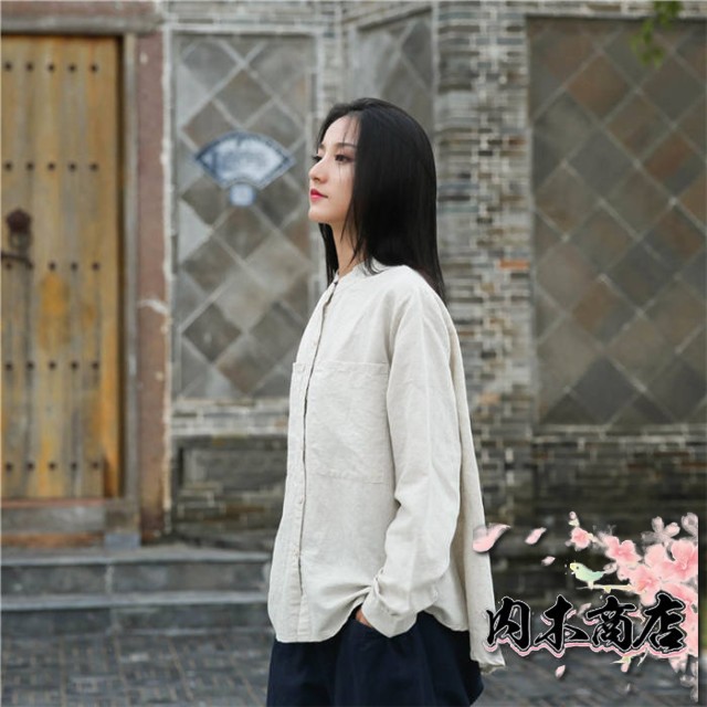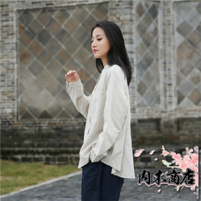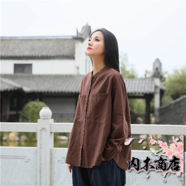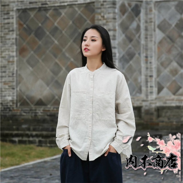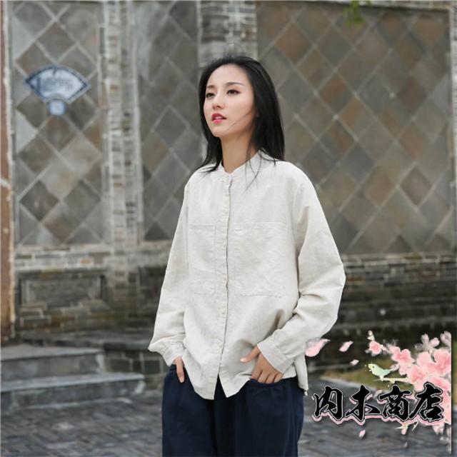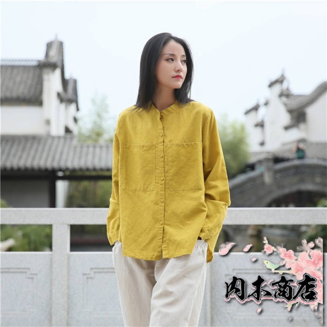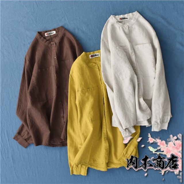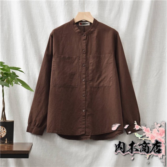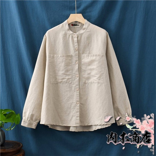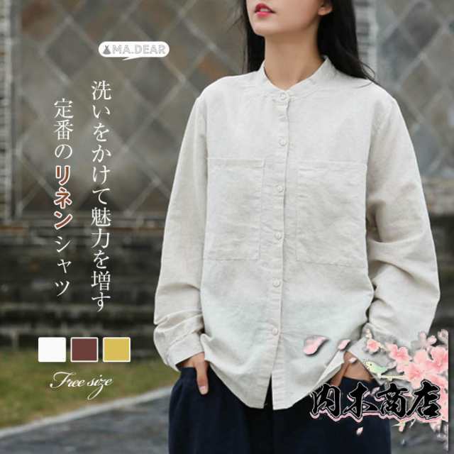 リネン シャツ レディース シャツブラウス 長袖 シャツ ブラウス ナチュラル 綿麻混 ゆったり ゆる きれいめ 体型カバー カジュアル おしゃれ 麻 綿 羽織り バンドカラー コットンリネン 大きいサイズ オーバーサイズ ポケット 春 秋 冬 重ね着 無地 30代 40代 50代